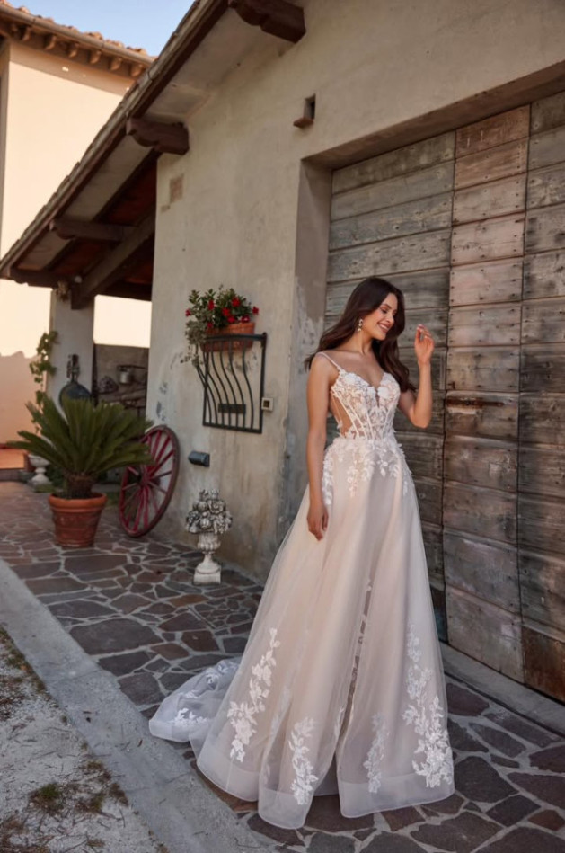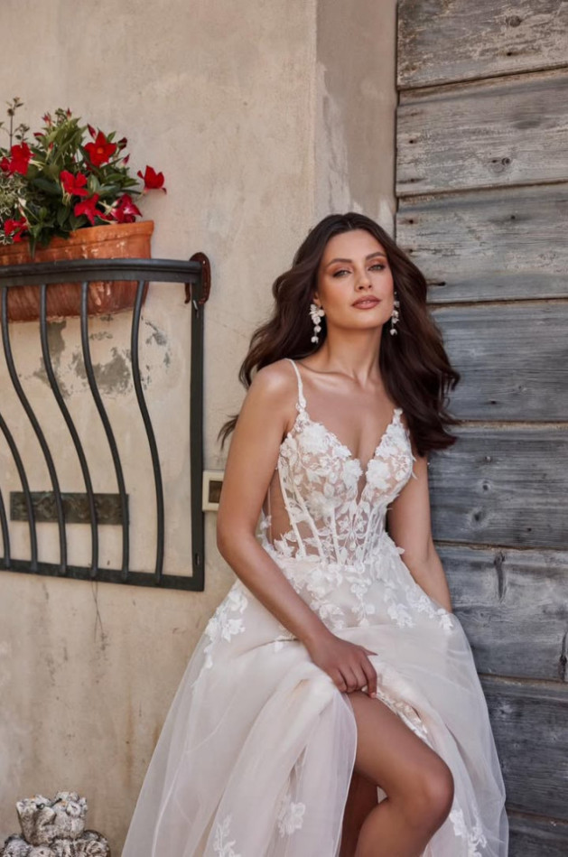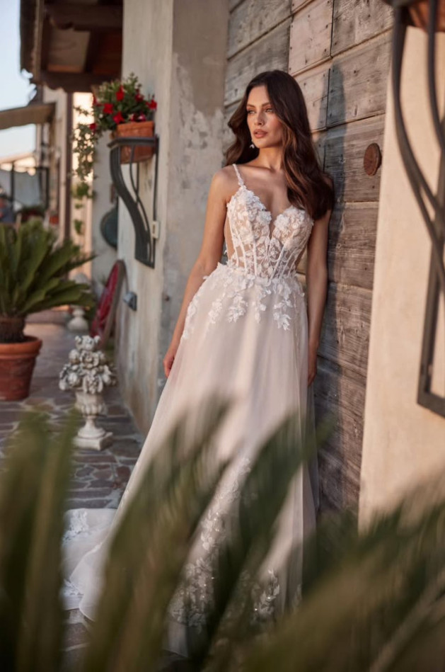 Rivera gown from Mari Lill collection available at the salon .
